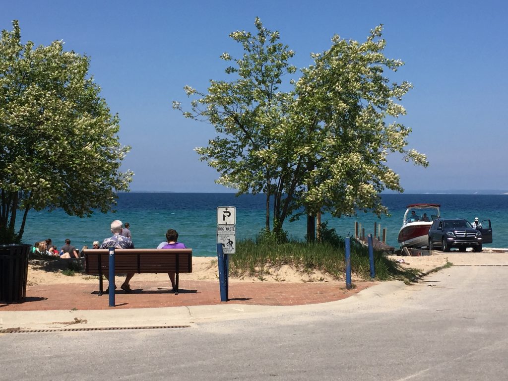 Lake Michigan Beaches are often difficult to use because of deep loose sand. There is a hard-surfaced beach deck with benches at the Cannery Beach in Glen Haven.