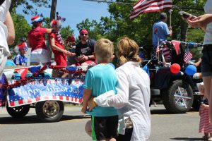 mom and son watching parade Posted on March 9, 2020 (June 19, 2021) by 4th of July in Glen Arbor; Parade; photo by Rockwell Art & Design for the Glen Lake Chamber