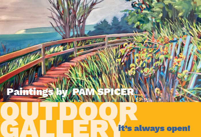 A ceremony to dedicate the Glen Arbor Arts Center’s new Outdoor Gallery exhibition takes place Sunday, May 30, 1 pm. The public is welcome to attend this event celebrating the work of Traverse City artist Pam Spicer.