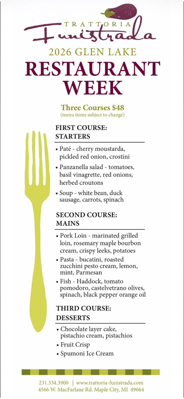 Get ready to indulge during the 12th annual Glen Lake Restaurant Week! From casual bites to gourmet dining, participating businesses will feature specials or a prix-fixe menu that highlights the best of the local culinary scene.