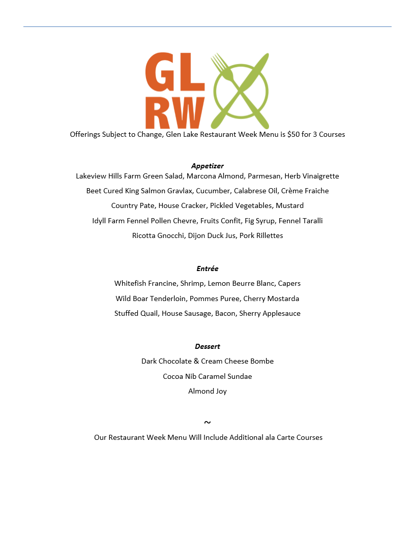 Glen Lake Restaurant Week offers an array of dining options “from French Fries to French Cuisine.”