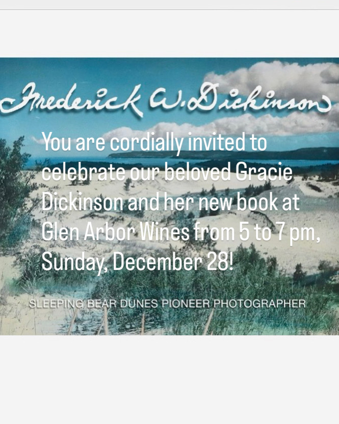 You are cordially invited to celebrate our beloved Grace Dickinson and her new book, Frederick W. Dickinson, Sleeping Bear Dunes Pioneer Photographer, from 5 to 7 pm, Sunday, December 28.