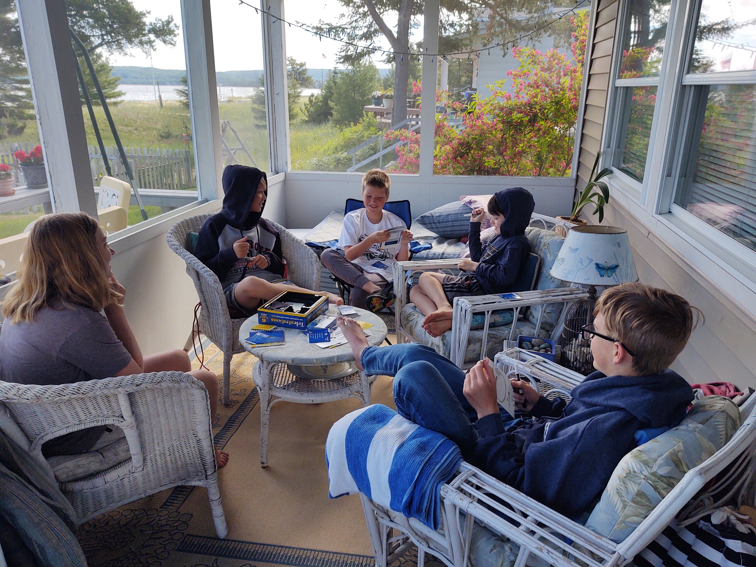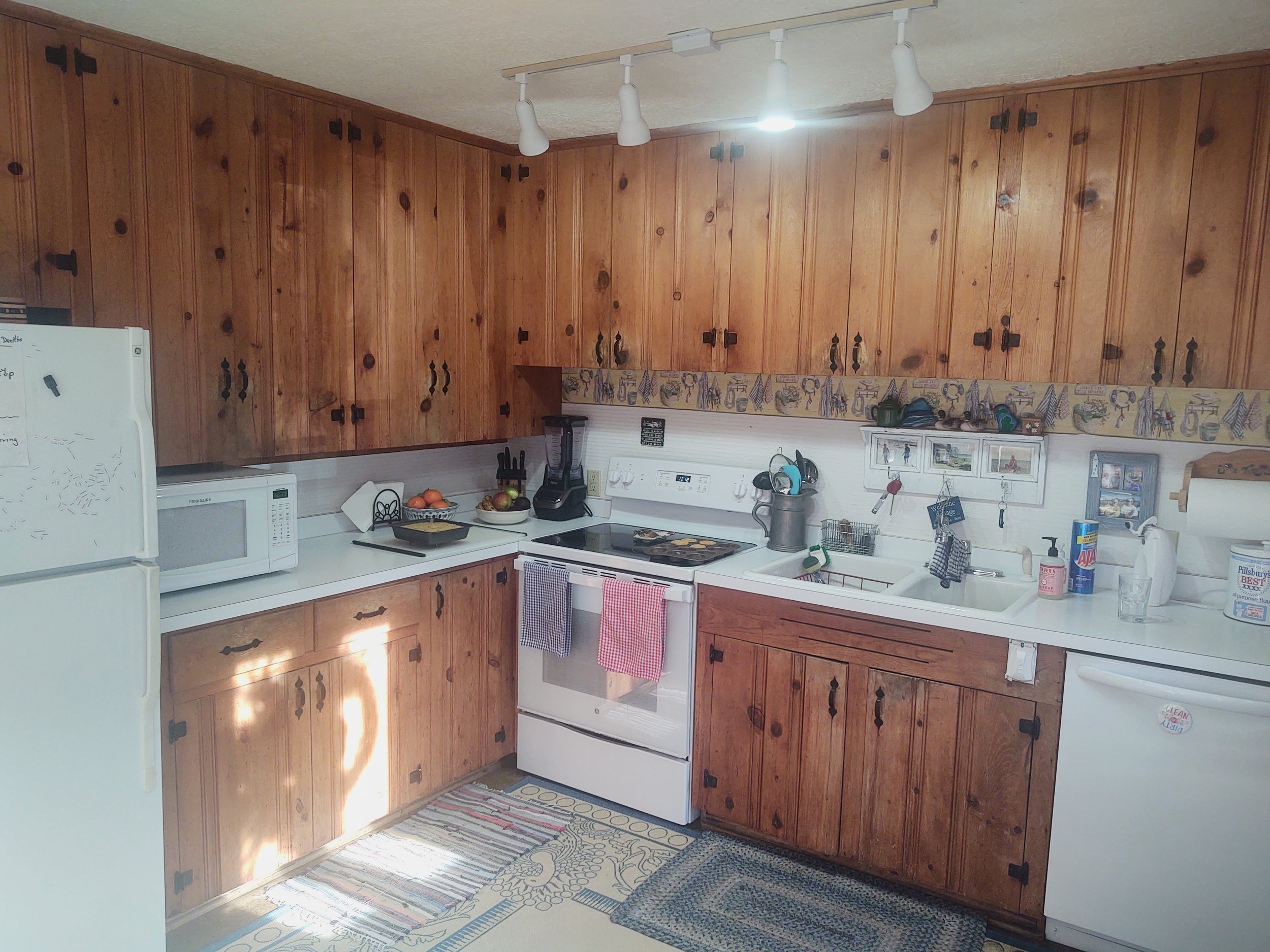 3 BR, 2 BA, 2 floors (careful – steep 10″ steps), gas fireplace, air conditioning, sleeps 6-9 (2 upstairs bedrooms: queen bed in one and two twins with a rollaway in the other. Downstairs bedroom has a queen bed. Foldout sofa bed in the living room.) Maximum guests on property: 9. Laundry room for stays 5 days and longer. More amenities: a kayak, traeger grill, gas grill, picnic tables outside in back, hammock, umbrella table on the deck, full kitchen, wi-fi with firestick tv streaming, full kitchen (microwave, blenders, coffee makers, toaster, etc.)