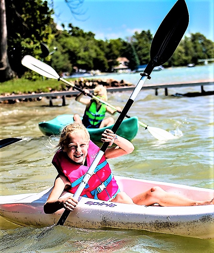 We are just 0.4 miles off busy M-22 on bucolic Day Forest Road, steps from the National Lakeshore and adjacent to Alligator Hill Trails. Two miles to Glen Arbor and three miles to the Dunes. Stunning Lake Views and gorgeous sunsets. The sandy bottom lake in front of our cabins stays waist deep for 100 yards from the shore, greatly enhancing water safety for the younger kids. We are nearby the Public Boat Launch for our Guests with boats – and have 2 Guest deep-water boat moorings and room for parking Guest boat trailers on our property. There are 2 separate Docks for Guests enjoyment, with sunset viewing benches on each. Inside the Dock bench storage are an ample supply of adult and kids flotation vests. A woodsy side area is available for kids to have an overnight “Tenting and Camping” experience. The decks are ideal for alfresco dining with a memorable lake view backdrop. Use the picnic table and the gourmet charcoal grill for warm-weather barbecues. Gather around the fire pit to roast s’mores and tell stories when the night comes. Watch for shooting stars and admire the gorgeous starry night. Occasionally, the Northern Lights are visible on a clear night sky. Feeling adventurous? Then, pick any of the 4 kayaks available and take them to the sparkling waters of Glen Lake for a splash around the Lake with your loved ones. Got a couple of kids? Grab the paddles and go for a canoe trip around the Lake. And when it’s time to finally relax, take your favorite novel and chill-out on the deck in the dappled sunshine.