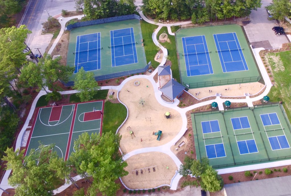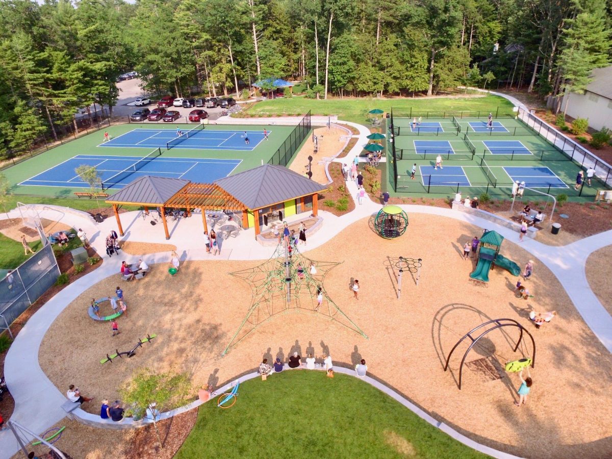 Renovated in 2018, the Glen Arbor Township Park features a playground, outdoor work-out equipment, tennis courts, pickleball courts, basketball courts, a public restroom/water station and picnic area. Sidewalks wind around the park offering multiple swings and park benches for seating. There is grassy open space and two pavilions. Parking is available in a lot or on the street.