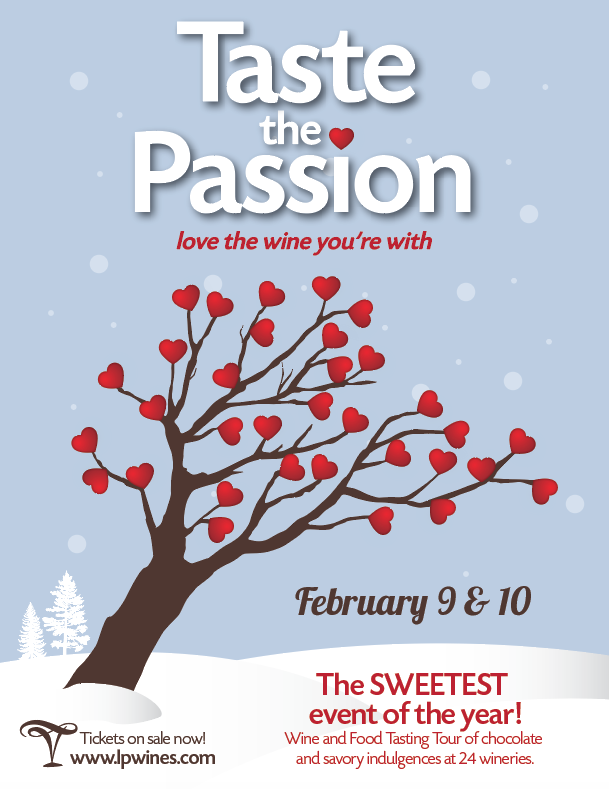 Taste the Passion Leelanau Peninsula Wine Trail Saturday & Sunday, February 9 & 10, 2019 $40 per person Join Taste the Passion – the SWEETEST event of the year! Winter Wonderland is here, and there’s “snow” much fun to be had along the trail! Gather your friends and embark on an adventure of snow-covered vineyards
