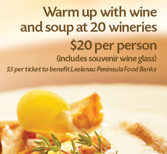Sips & Soups Leelanau Peninsula Wine Trail Saturday, January 12, 2019 12 to 5 pm $20 per person Experience the magic of the wine trail covered in a glistening blanket of snow, while sipping savory soups and hearty chilis paired with delicious Pinot Noirs, Rieslings, Chardonnays and more! Tickets to this SOUPer event are $20