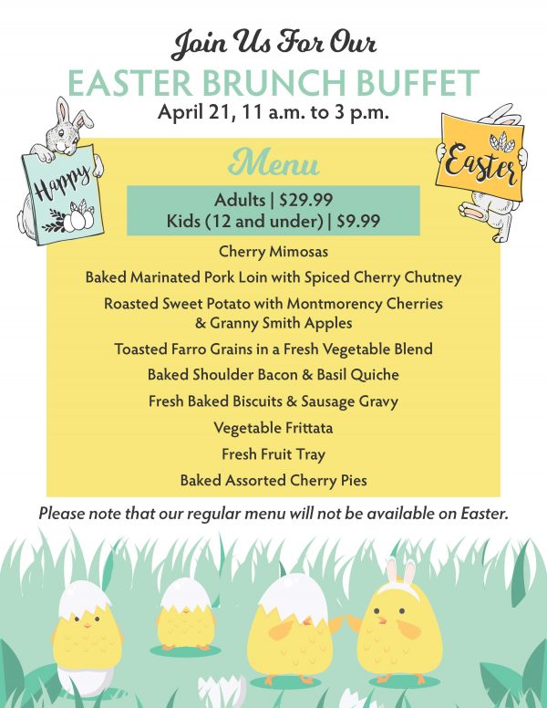 Join us for our Easter Brunch Buffet at Cherry Public House in Glen Arbor on April 21 from 11 a.m. to 3 p.m. -MENU- Adults = $29.99 and Children 12 […]