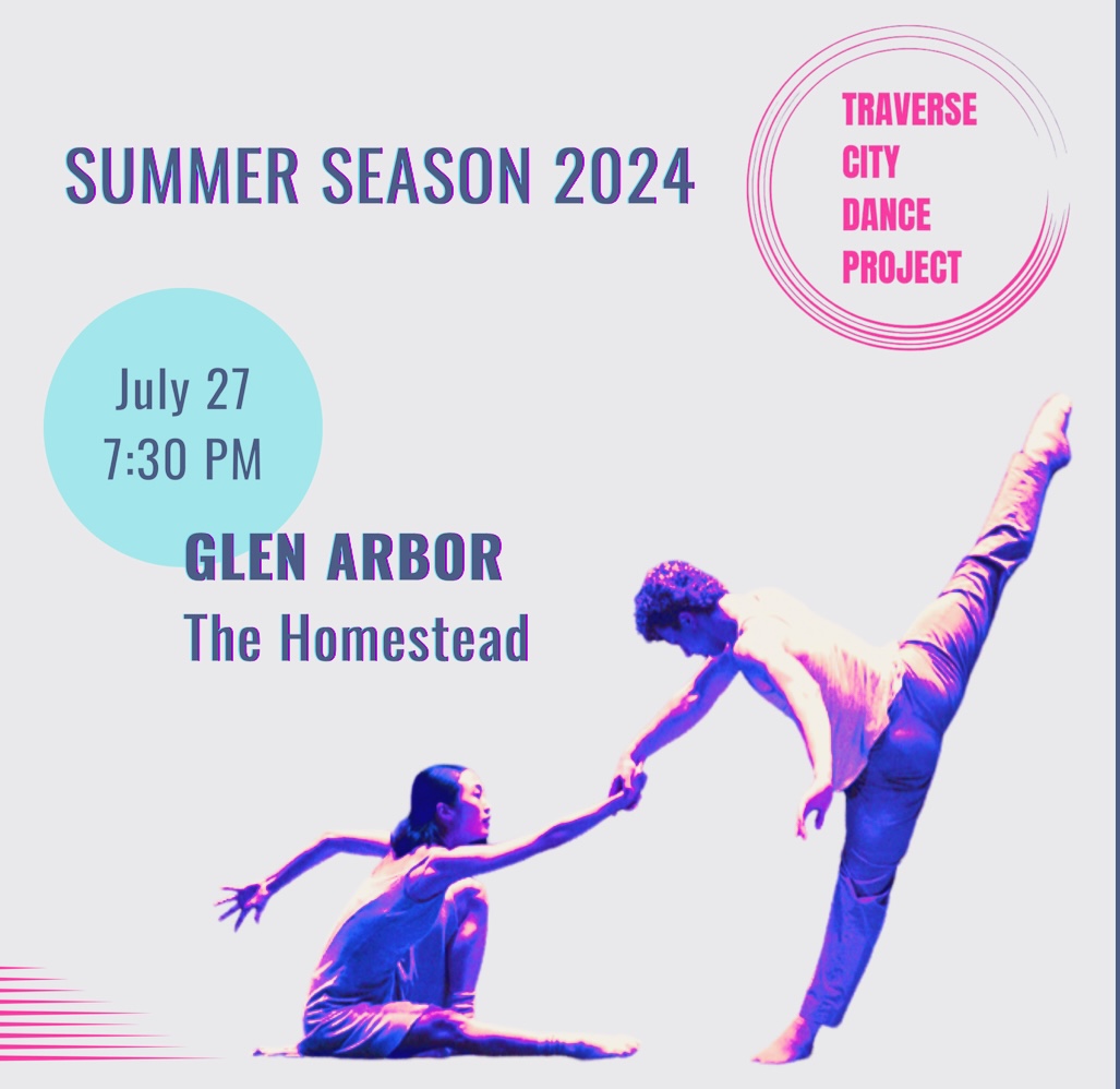 The Homestead 1 Wood Ridge Rd, Glen Arbor, MI, United StatesThe Traverse City Dance Project's first stop on its 2024 summer tour will be an exciting and rare opportunity for Northern Michigan audiences to experience professional dance at its best, right here in Glen Arbor! Set against the picturesque backdrop of The Homestead resort, attendees are in for an evening of artistic brilliance and a